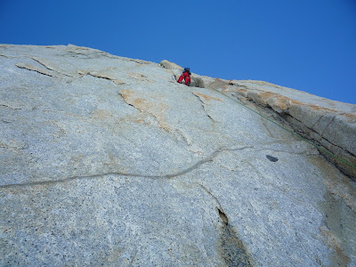 Joel leading off the "3-star" bivy ledge